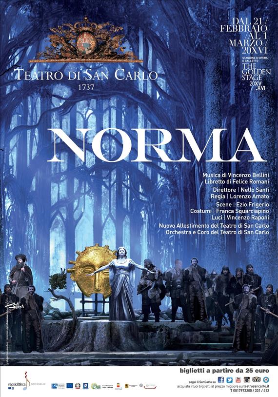 Domenica 21 febbraio 2016 ore 17.00 (in replica per un totale di 7 recite, fino a martedì 1° marzo) ritorna al Teatro di San Carlo Norma di Vincenzo Bellini, in un nuovo allestimento con scene di Ezio Frigerio e costumi di Franca Squarciapino (Premio Oscar per i migliori costumi in Cyrano de Bergerac del 1991) per la regia di Lorenzo Amato, luci di Vincenzo Raponi.