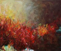 Anepigrafi, questi dipinti di grande formato si collocano in un ideale tracciato semantico che, opponendosi all’arbitrio lirico di tematiche predefinite care agli autori di tendenza, privilegia in uno slancio sinuoso il costante flusso del libero rapporto tra forme e colore. L’esplosione, nello spettro cromatico del rosso, cupa vena terrosa, o polla vulcanica (il ‘dropping di De Kooning), è l’ incandescente ‘panta rei’ della trasformazione astratta (Rothko) che, non segnando confini, consegna all’apporto della conoscenza di sé e dell’universo spazi illimitati, fitti di passaggi chiaroscurali, in luminosi contrasti (Caravaggio e Rembrandt).