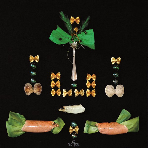 Il grande amore per la Natura rilascia, per Gabriele, l’armonia di uno spartito musicale dove l’eco ininterrotta della vita, quei simulacri di minuscole creature marine e terrene, ritrova nuova collocazione identitaria in un’ astrazione delicata e nostalgica. La materia organica diviene nicchia preziosa di tracce forgiate sui pigmenti naturali - malachite, indaco, radici, polvere di zenzero, cannella e curcuma – ricevendo i bagliori di lamina d’oro e argento...Genius loci di un’ affascinante fabulazione in tableaux-collages dietro vetro, sono le quinte multiformi del divenire, lanterna magica a tema, desunta da un appassionato sperimentare. Al bando colla e colore, davvero superflui nell’intercalare delle maree della più libera creatività in questo microcosmo di duttile eleganza, metafora di uno specchio intarsiato. Va detto, è la voce del mito a vincere, nel narrarci di prodigiosamente preservati scenari nei quali si riflette l’ auspicata salvezza dell’umanità.
