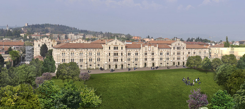 1) Cominciamo dal restauro del Panificio della Caserma Santa Marta, nuova sede dei dipartimenti di Economia aziendale, Scienze economiche e una parte di Scienze giuridiche nonché sede della Biblioteca economica dell’università di Verona. Si tratta di un manufatto imponente che non si coglie subito dall'esterno ma l'idea di una tale bellezza risorta si ha solo visitandola al suo interno.