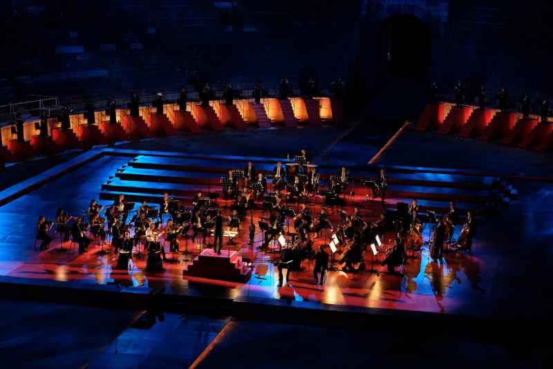 Fondazione Arena di Verona ha proposto un evento unico per la seconda serata del Festival 2020 Nel cuore della musica: per la prima volta in assoluto le pietre millenarie dell’anfiteatro hanno risuonato del capolavoro estremo di Mozart, il Requiem intimo e grandioso, per l’occasione, in collaborazione con Confindustria Verona, specialmente dedicato alle vittime veronesi della pandemia e aperto a tutti i loro familiari.