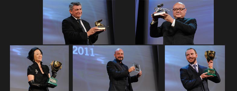 - in basso a destra Michael Fassbender nel film Shame di Steve McQueen (Gran Bretagna), Coppa Volpi per la migliore interpretazione maschile.