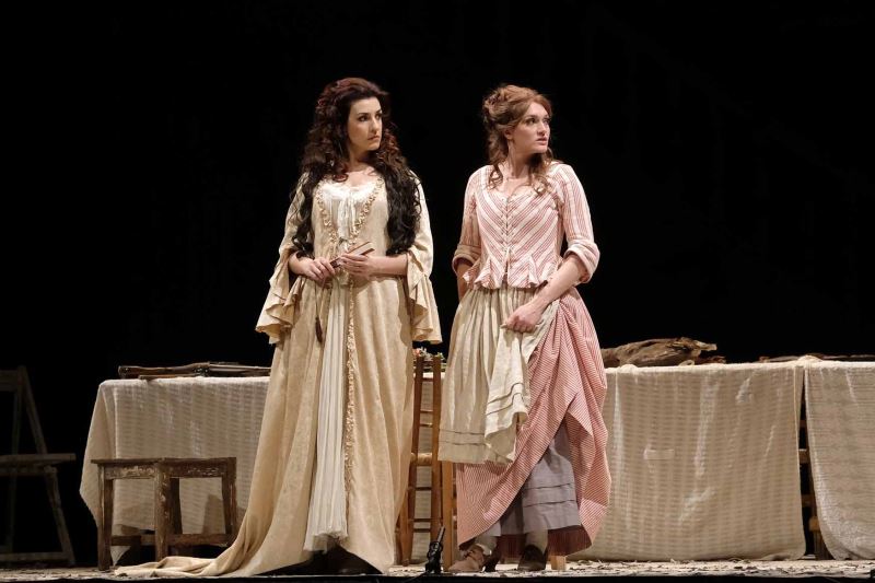 Alla direzione dell’orchestra e degli artisti il maestro Sesto Quatrini, al suo debutto in una opera mozartiana in Italia. Si nota subito fin dall’inizio della Ouverture che il lavoro svolto dal maestro è stato sulla tessitura musicale, rispettando le sfumature antiche ma attualizzandole e con un lavoro di sottrazione più che di addizione. L’orchestra ha assecondato puntualmente il suo gesto con eleganza ed essenzialità. Il cembalo, strumento imprescindibile nel genere, suonato da Maria Cristina Orsolato, ha seguito bene recitativi e arie. Peccato non vederlo alla vista, sarebbe un motivo scenografico in più, un personaggio anch’esso. Lo sforzo di Quatrini inoltre si rivolge alla filologia testuale e ha prestato attenzione alla lingua, alle parole. E sotto questo aspetto i cantanti hanno risposto con adeguate dosi comunicative e di fraseggio.