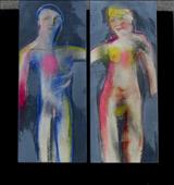 Con la sgorbia da legno, Lia dardeggia sulla superficie della tela – anzi ve li infigge, partorendoli drammaticamente, quei corpi. I graffiti di quel segno incisivo, quasi icastico che implica, nel continuo contrappunto tra toni cupi e squarci luminosi, il sensus animi' scaturito come fonte perenne da un pensiero lontano, quell'ellissi dei ricordi e dei momenti degli affetti comuni che nulla più giudica né chiede ad un universo che respira, da millenni, umile sofferenza ma non supina accettazione – “Ho capito la musica”, “Sempre io” -. Il poi, per Lia Franzìa, è tornare alle proprie radici, cogliere i profumi della terra di Liguria e del suo mare – non importa la stagione - in uno scenario di serenità. Rimpianta. Finalmente tangibile. Così, oggi e, auguriamocelo, a lungo, l'Eden di Lia rappresenta il grande libro della vita da sfogliare, giorno dopo giorno. Forse proprio per questo, aprendosi l'orizzonte allo sguardo – e al cuore, non più “Canòpo” ma “Finestra” -, l''Humanitas” si riconcilia con la Storia: in un arco ideale tra presente e passato ”Filia et mater” affrontano fiduciose, grazie al tesoro dell'esperienza, un passaggio senza ombre né simulacri. E, sempre, la Donna ( “Verso la vita” - su sfondo nero, il volume a fasce luminescenti bianche, gialle e rosa, schiude il bozzolo del corpo alla sua vera essenza -) si svela, in nudità consapevole ma non allusiva. Sentimenti, in adamitico pudore, essenziale e senza remore, (“Ancora insieme”, “Non ci capiamo”) ed Emozioni, nella serialità, cangiante, gioiosa e morbida, di una conquistata femminilità (“Siamo Donne”)...