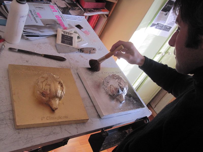 Fabén ha realizzato con fantasiosa maestria due magnifici emblemi scultorei, effige in germoglio del Radicchio Rosso della sua terra resi ancora più preziosi e significativi in lamina d'oro e d'argento. E' questo l'omaggio della giuria tecnica ai primi due classificati per il miglior primo e secondo piatto. Una bella cerimonia, l'assegnazione del “Trofeo Radicchio d'Argento” : momento conclusivo alla Cena di Gala ”.
