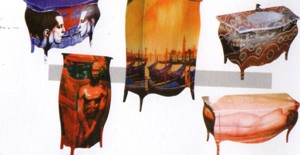 Mobili, dove tradizione ed innovazione coesistono in affascinante binomio, grazie alla perizia di un’impeccabile tridimensionalità digitalizzata… E, con Lucchini, che ama definirsi “artigiano delle idee”, l’héritage della manifattura veronese (famoso nel mondo) accoglie la voce del rinnovamento nella flessuosa parabola di cromie impressive. Come, ad esempio, in “Viaggi”, il più recente approdo e tangibile conferma del successo tra realtà progettuale e moltiplicazione fattiva delle potenzialità del singolo nel lavoro di squadra… Nello sfogliare le pagine di un carnet de voyage, il tocco di un nuovo design contemporaneo veste una guaina cromatica sottile e seducente che parla di nostalgia nel ritrovare, esaltandoli, miti ed icone (siano Buddha, Marylin, le Big Cities, dove l’on the road è culla di trend e intermittenti flussi di pensiero, o il magico velo senza tempo delle vedute veneziane…) . E se le capitali ai quattro angoli della Terra raccolgono frammenti di vita mutuati sull’esperienza diretta dell’autore, i grandi momenti entrati a far parte dell’immaginario collettivo, della nostra memoria ‘storica’, sono nell’omaggio di Lucchini allo scorrere sequenziale di fotogrammi cinematografici (citeremo, tra i diversi, del neorealista Giuseppe de Santis , “Riso Amaro”, in uno straordinario ‘seppia’ ): la lanterna magica che svela i momenti trailer di un magico set.