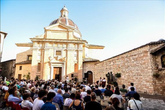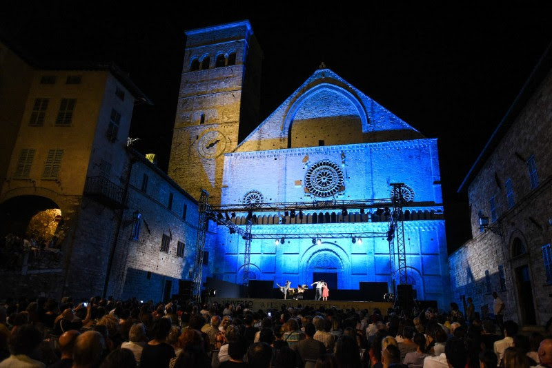 La serata più importante è stata però per l’exploit finale: lo spettacolo Glourious Franciscus di Michele Placido, interamente dedicato alla vita del santo in collaborazione con l’Anonima Frottolisti assisana sul sagrato della Basilica papale di Santa Maria degli Angeli, con mille posti a sedere.