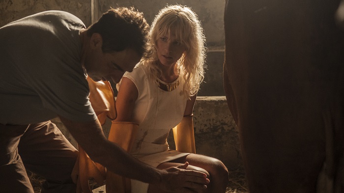 Liz Solari è la sorpresa del film. Di origine colombiana, comincia come modella e tuttora impegnata in campagne pubblicitarie, ma ha fatto televisione (numerosi episodi di serial TV) e cinema. Soprattutto “Ex – Amici come prima” dei Vanzina, fratelli mitici del cinema italiano. In “Sei mai stata sulla Luna?” Liz Solari deve dividersi in due ruoli, uno al Nord, nella metropoli milanese, dove segue le sfilate per una importante rivista di moda, e uno al Sud, dove pur continuando a indossare alta moda, deve immergersi nella masseria che ha ereditato e curare pascolo e stalle. Ci incuriosiva saperne di più e allora abbiamo chiesto direttamente all’attrice come ha affrontato il personaggio.