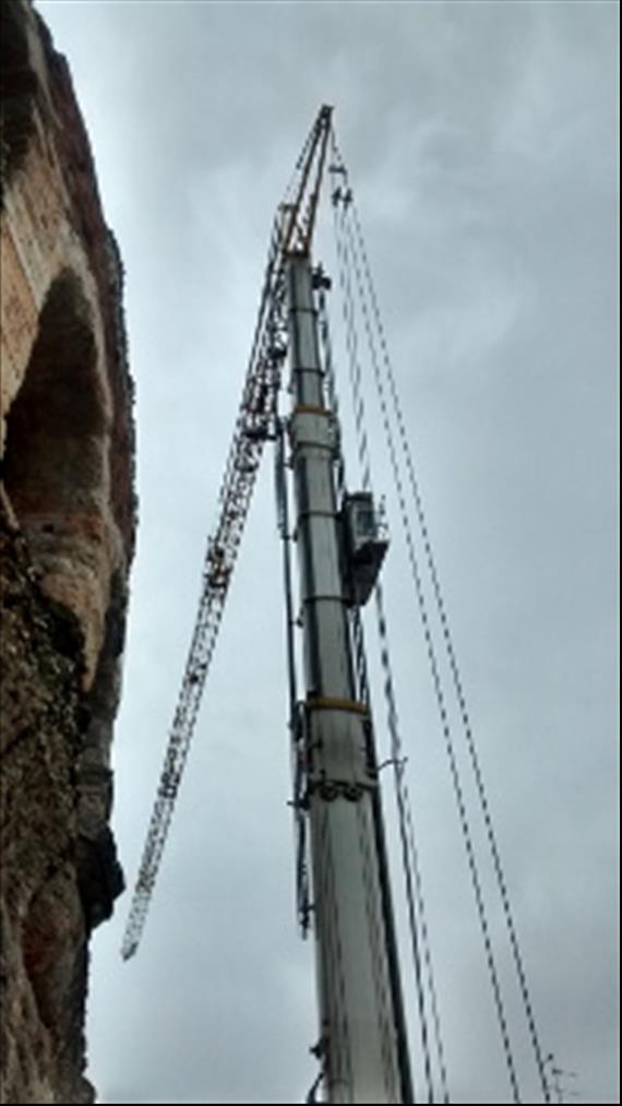 La nuova Gru telescopica al lavoro per l'Arena