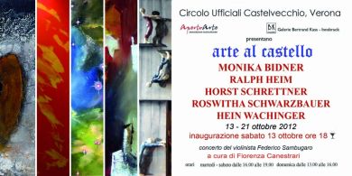 Dal 1982, la BK Galerie investe coraggiosamente in Arte, verso un traguardo sempre più meritevole, grazie ad una ormai rara professionalità a 360° gradi che parla di ferma dedizione e lungimirante intuito, sia nell’individuare giovani talenti, sia nella riconferma di Autori che, in quella fucina, hanno avuto il varo per l’ affermazione in campo internazionale. Eppure, nonostante la fama consolidata, di volta in volta stupisce l’entusiasmo del console Kass (fedelmente affiancato da Canestrari) nel continuare a promuovere nuovi eventi a Verona, considerata Oltralpe la capitale europea della cultura in senso lato… Sinergia vincente, in quest’ottica e a dispetto della difficile fase attuale, per un’équipe ben affiatata. Ad un pubblico numeroso, partecipe ai diversi momenti di un opening retto sul contrappunto ideale tra pittura scultura e musica, Fiorenza Canestrari introduce gli Artisti e il giovanissimo virtuoso dell’archetto Federico Sambugaro (tra l’altro, reduce dal trionfo ad Innsbruck). Accordi toccanti, in veste 'classica' (da Mozart a Liszt a Gounod) e ‘swing’ in rivisitazione personale. Oltre trenta le opere in esposizione per le tappe tematiche di un’affascinante galleria visuale, consentono a Monika Bidner, Ralph Heim, Horst Richard Schrettner, Roswitha Schwarzbauer, Hain Wachinger , la più felice libertà espressiva….