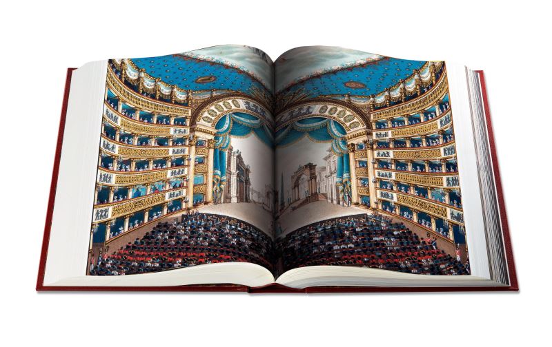 Eccezionale è l’apparato iconografico sviluppato in grande formato: oltre 300 immagini di fotografie di scena, bozzetti, scenografie, lettere e spartiti autografi, ritratti e documenti storici. La qualità della stampa e la presenza di 45 tavole applicate manualmente conferiscono ulteriore valore all’opera. Tutto questo è stato possibile attingendo agli archivi delle istituzioni rossiniane, all’Archivio Ricordi e in particolare alla collezione privata di Sergio Ragni, appassionato ed esperto di Rossini, che ha raccolto un patrimonio senza pari documentato nel volume con apposita campagna fotografica realizzata da Alfredo Dagli Orti.